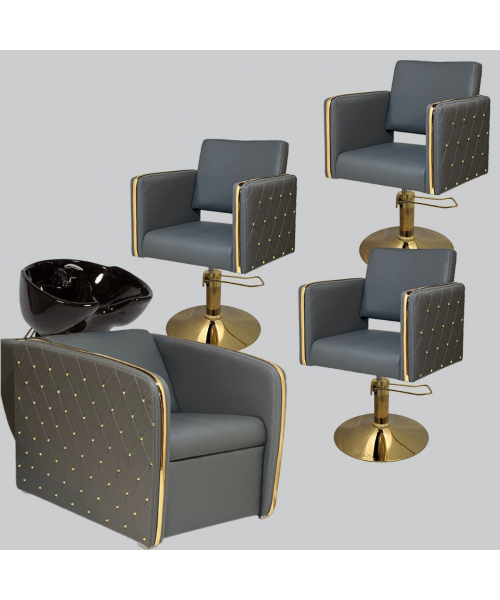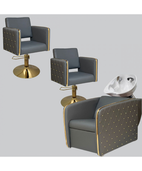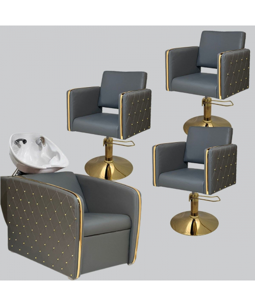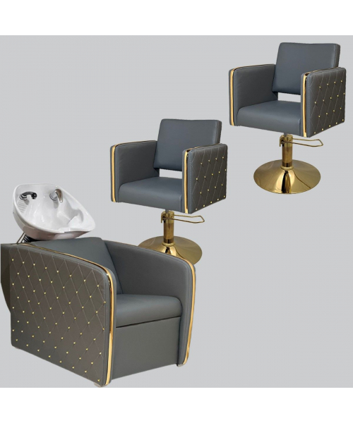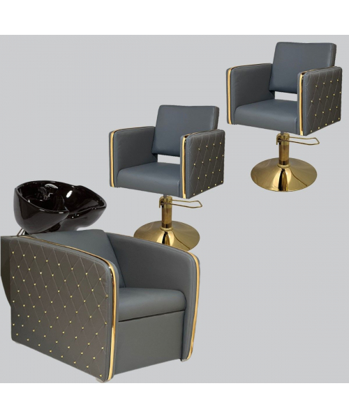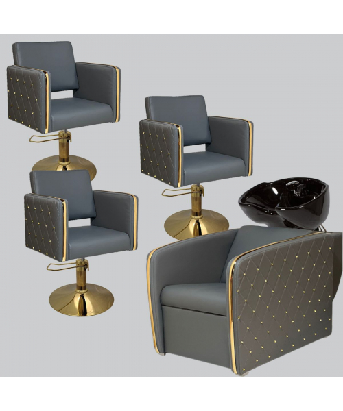 Парикмахерский комплект "Голдиум" - сочетает в себе дерзкий, но продуманный до мелочей дизайн и удобство эксплуатации. Данная модель станет настоящим украшением интерьера. Изюминкой дизайна является каретная стяжка, украшающая собой спинку и боковые поверхности кресла. Эргономичная форма сиденья обеспечивает необходимый уровень комфорта.