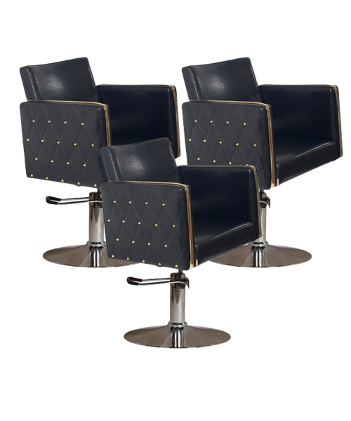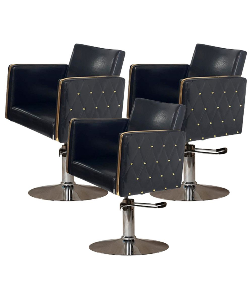 Парикмахерский комплект кресел "Голдиум Блэк Д" - Мягкий элемент этого парикмахерского кресла «Голдиум Black» наполнены практичным эластичным поролоном и обтянуты высококачественной искусственной кожей. Вы не потратите на чистку кресла много времени, потому что они не нуждаются в специальной обработке. Строгость линий и массивная оригинальная форма прекрасно сочетается с высокой степенью удобства, которую получит клиент благодаря материалам, использованным при производстве этой модели.
