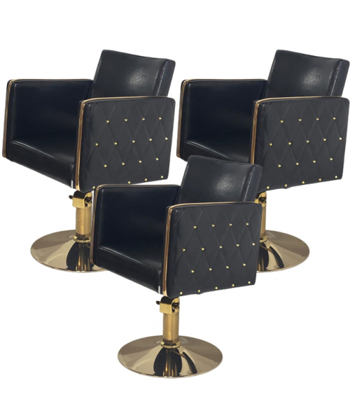Парикмахерский комплект кресел "Голдиум Блэк З" - Мягкий элемент этого парикмахерского кресла «Голдиум Black» наполнены практичным эластичным поролоном и обтянуты высококачественной искусственной кожей. Вы не потратите на чистку кресла много времени, потому что они не нуждаются в специальной обработке. Строгость линий и массивная оригинальная форма прекрасно сочетается с высокой степенью удобства, которую получит клиент благодаря материалам, использованным при производстве этой модели.