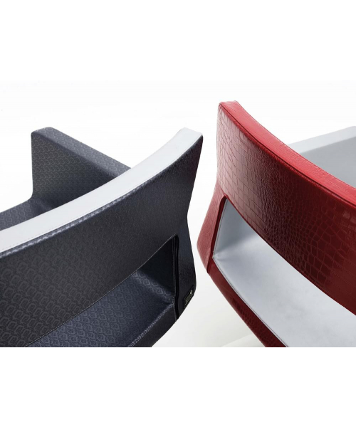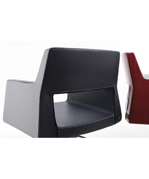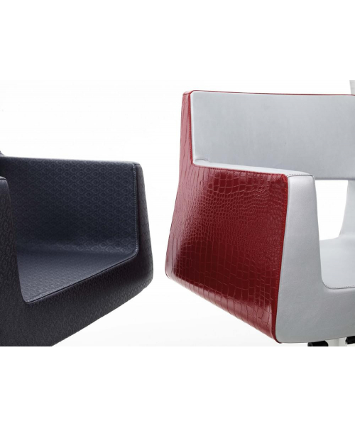 Кресло для клиента новой оригинальной формы, выполнено из высококачественного поролона, каркас обтянут искусственной кожей, мягкие кожанные подлокотники. Комплектуется стационаром, гидроподъемником с основанием на выбор: пятилучье, диск, квадрат.