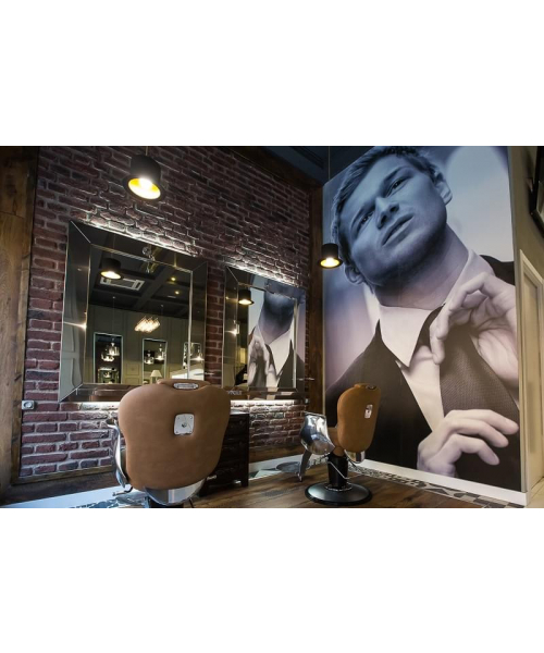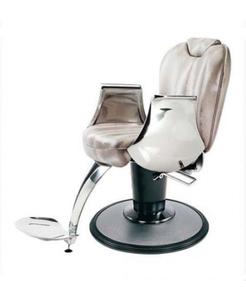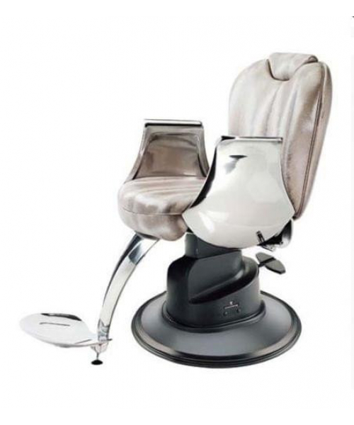 Кресло для клиента – мужское, выполнено из высококачественного поролона, каркас обтянут искусственной кожей, с выдвижным подголовником и откидной спинкой. Подлокотники и подставка под ноги металлические хромированные. Комплектуется гидроподъемником с фиксацией поворота, пластиковое основание на диске.