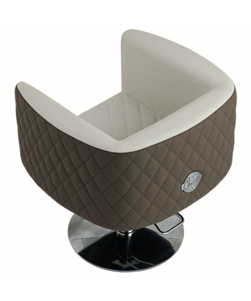 Кресло парикмахерское "SABRINA" - на металлическом и многослойном деревянном каркасе со спинкой, сиденьем и подлокотниками из пенополиуретана. Алюминиевая база с поворотным механизмом и гидравлическим насосом. Доступны различные варианты отделки.