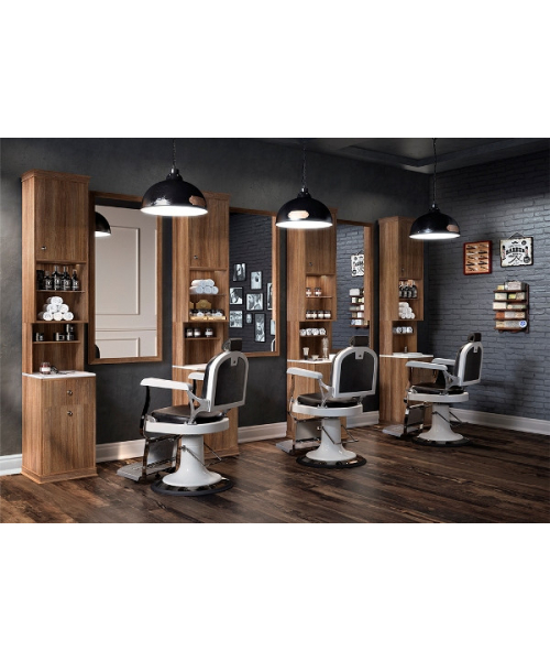 ИталияМужское барбер кресло "560" - Кресло для клиента мужское, на гидравлике с блокировкой на диске. Каркас кресла выполнен из металла и пластика, цвет пластика белый или черный глянец. Кресло оснащено пластиковыми подлокотниками, регулируемой спинкой и подставкой для ног, при изменении угла наклона спинка и подножка регулируются синхронно, а также кресло имеет регулируемый по высоте подголовник. Обивка - искусственная кожа высшего качества.
