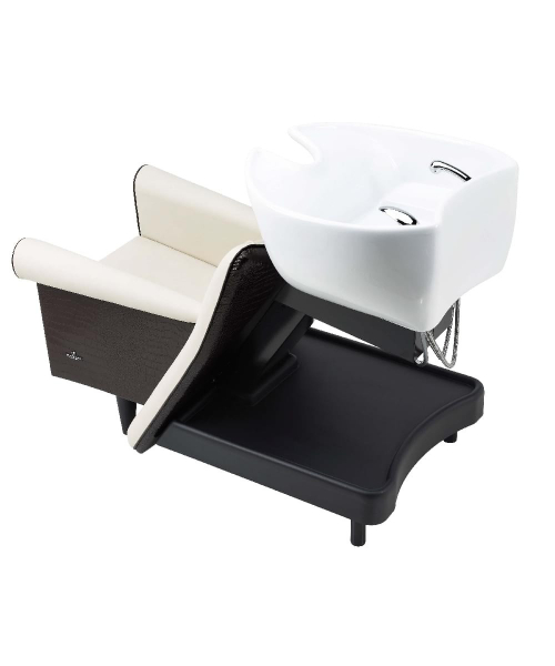 Мойка с креслом на металлическом каркасе черного цвета, сзади пластиковая полка. Комплектуется глубокой керамической раковиной белого или черного цвета, с регулировкой угла наклона, комплектом смесителя с хромированной лейкой душа. Каркас кресла выполнен из металла, мягкие элементы обтянуты искусственной кожей высшего качества, мягкие подлокотники.