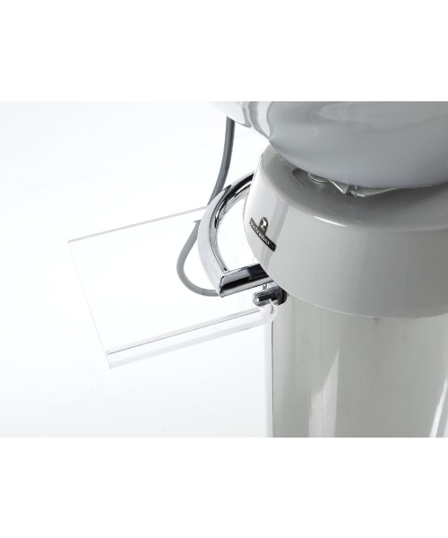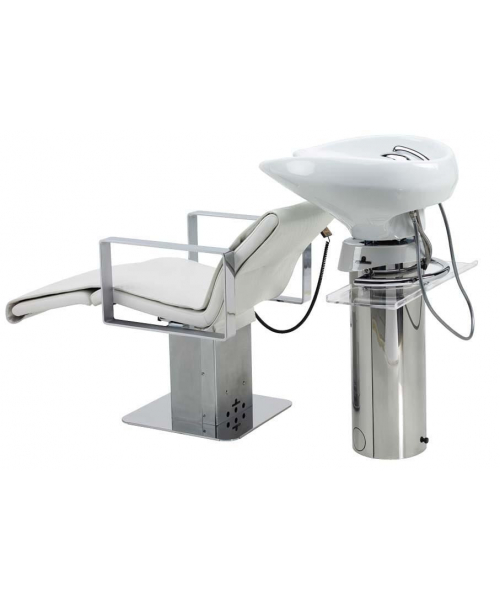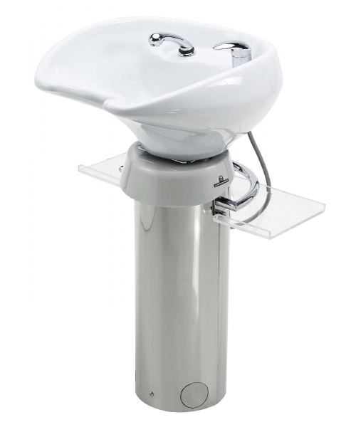Мойка парикмахерская для мытья волос на стойке без кресла. Комплектуется глубокой белой или черной керамической раковиной, с регулировкой угла наклона, комплектом смесителя с хромированной лейкой душа. Стойка хромированная, с держателем для полотенец.