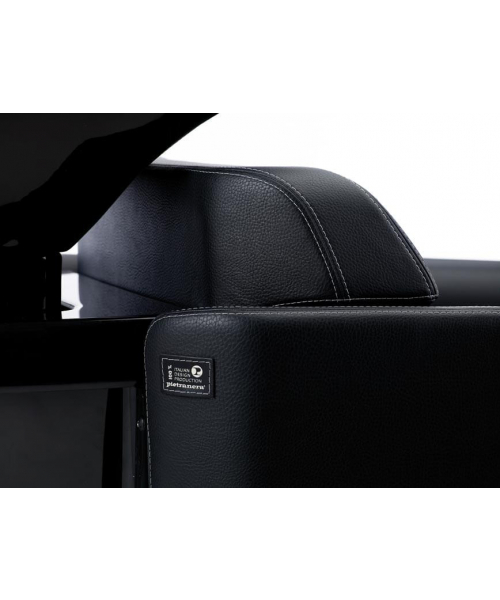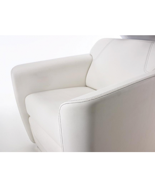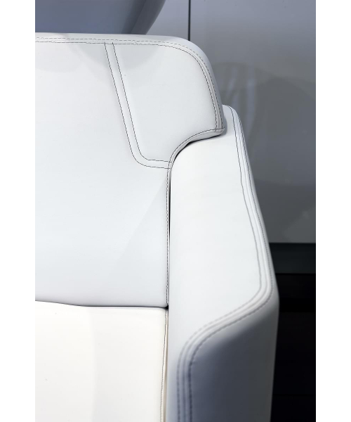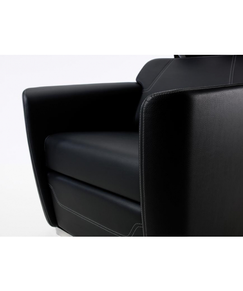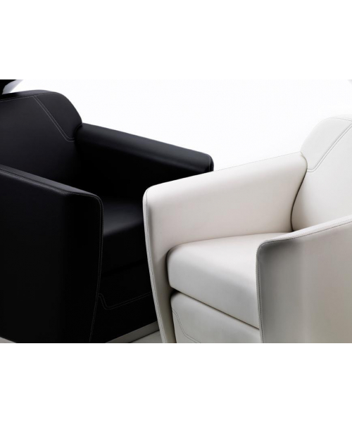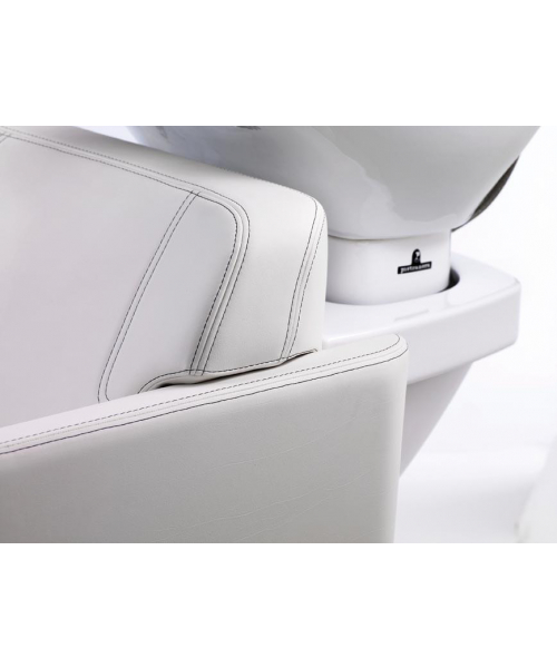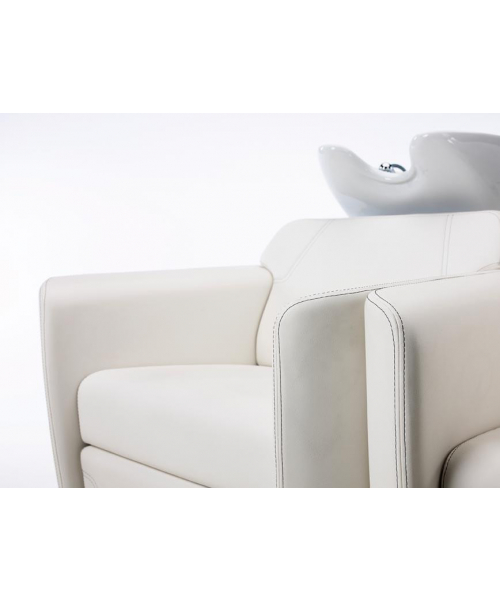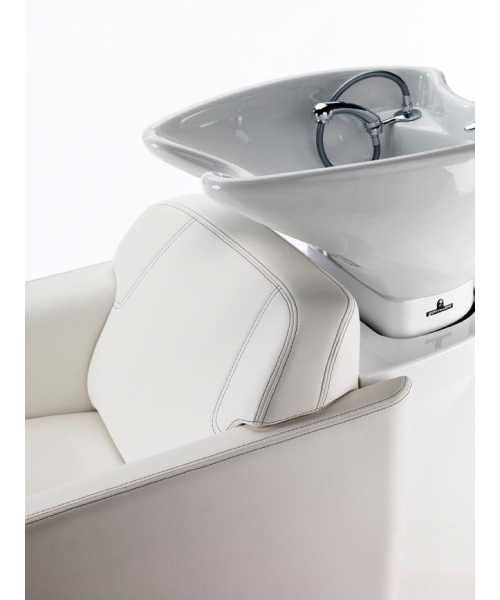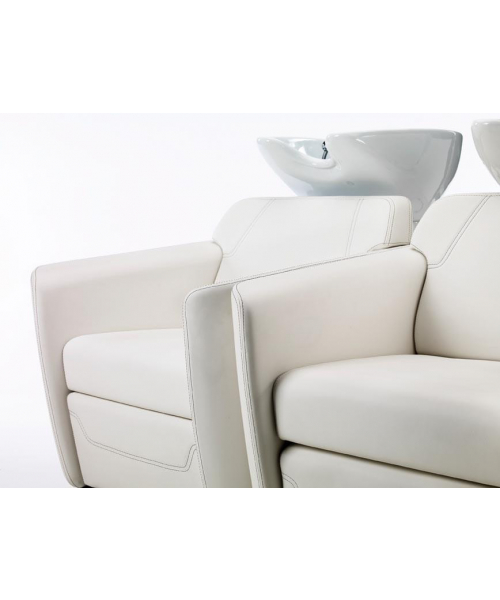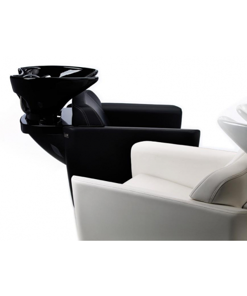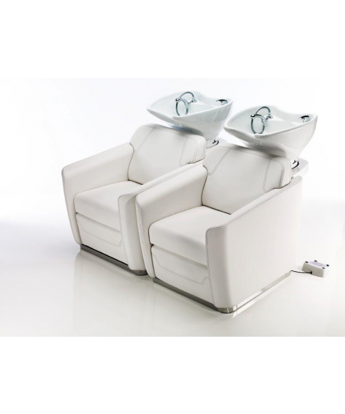 Мойка с креслом на белом или чёрном каркасе. Комплектуется глубокой керамической раковиной белого или черного цвета, с регулировкой угла наклона, комплектом смесителя с хромированной лейкой душа. Каркас кресла выполнен из металла, мягкие элементы обтянуты искусственной кожей высшего качества, мягкое широкое кресло. Возможен вариант с электрической подножкой, легкое управление с помощью пульта, а также с массажем спины. Цена указана на мойку с белым каркасом и белой средней раковиной, без электрической подножки.