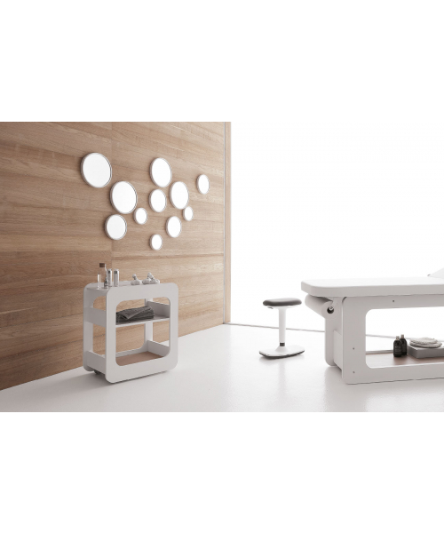 СПА тележка "Creo trolley" - отличное дополнение, оригинальное и изысканное, выполненное из матовой белой меламиновой доски с полками, доступными в 3 различных вариантах отделки: белая лиственница, дуб бардолино и натуральный венге. Creo можно использовать для различных целей; при сборке верхняя полка может быть установлена заподлицо, что является лучшим решением в качестве опорного поддона для механизмов.