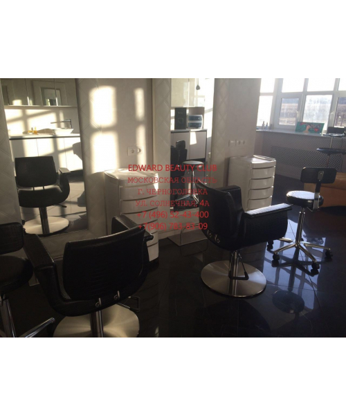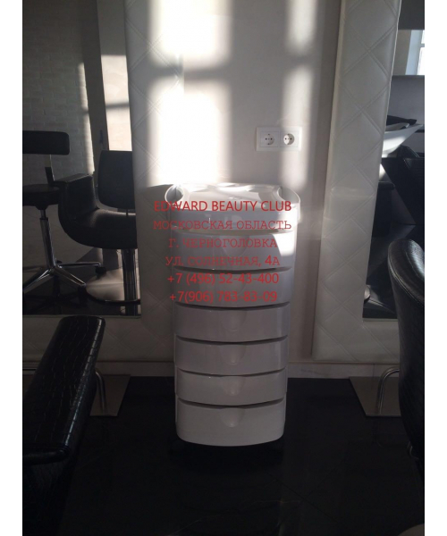 Тележка парикмахерская закрытого типа на колесиках. Выполнена из прочного пластика, с шестью выдвижными ящиками и фенодержателем.