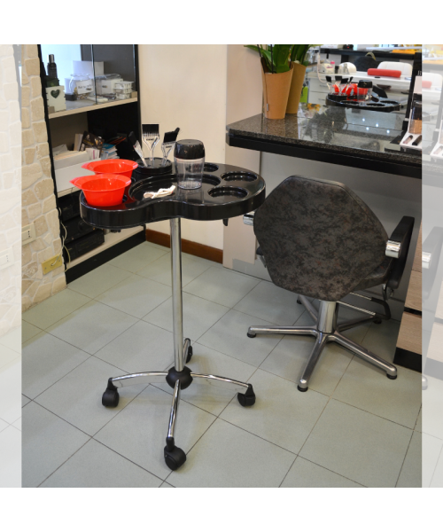 Тележка для окрашивания "PALETTE COLOR" - тележка с артикулом A-м60003004 из пластика на колесах. Имеет 5 отделений под миски для окрашивания, 5 отделений под кисти и отделение для сопутствующих аксессуаров.