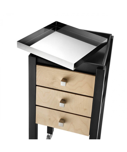 Тележка парикмахерская "ECO ELEGANT" - выполнена из дерева и оснащена стальным отсеком для защиты поверхности и использования горячих инструментов. Тележка с артикулом A-м60003084 оснащена тремя выдвижными ящиками и прорезиненными колесами которые позволяют легко и бесшумно перемещать ее.