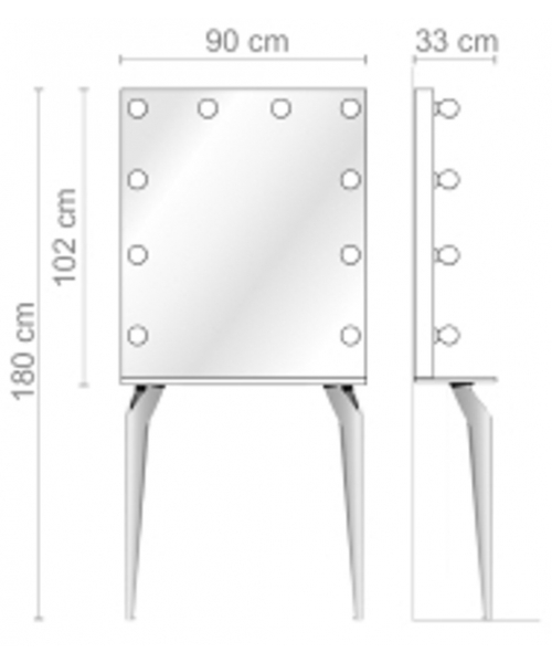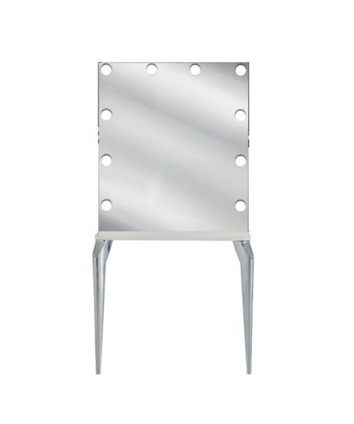 Зеркало парикмахерское "BACKSTAGE ALU" с лампочками - Зеркало с артикулом С-м60002521 оснащено подсветкой, ламинированной столешницей и алюминиевыми ножками. Каркас зеркала и столешница выполнены из белого ламината. Крепление к стене.