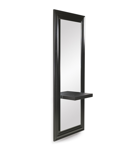 Зеркало парикмахерское "Jadmahal" - с декоративной рамкой. Зеркало оснащено ламинированной столешницей. Рама зеркала и столешница выполнены в ламинате белого или черного цвета. Крепление к стене.