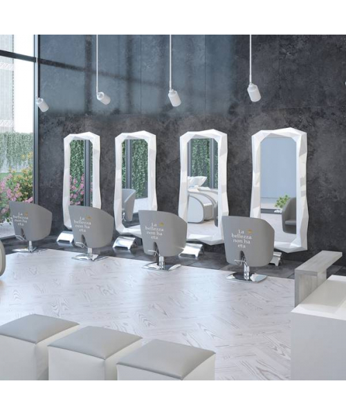 Зеркало парикмахерское "SOLITAIRE" - одностороннее оригинальной формы. Каркас выполнен из стекловолокна с блестящим эффектом. Крепление к стене.