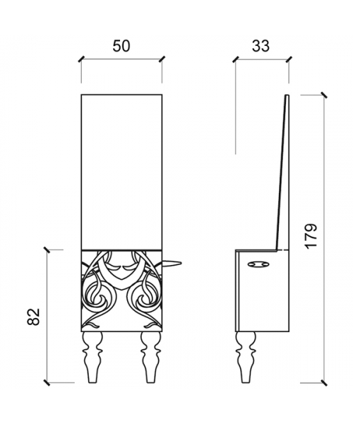 Зеркало парикмахерское "Style 84" - корпус тумбы выполнен из глянцевого акрила черного или белого цвета с рисунком. Тумба оснащена резными ножками. Крепление к стене.