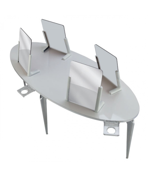 Зеркало парикмахерское "VERSO 4-O" на четыре рабочих места - Рабочий туалет с артикулом С-м60002744 оснащен настольными зеркалами с кронштейнами крепления в белом или черном цвете и алюминиевыми ножками. Столешница выполнена в ламинате.