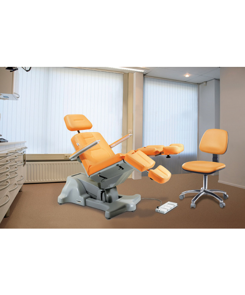 Podo Mix – это подологическое кресло Lemi Group, разработанное, чтобы совмешать максимальный комфорт для клиента с высокой практичностью использования для мастера. Минимальная высота кресла равна 55 см и позволяет всем клиентам удобно садиться в кресло. Подолог может и работать, пока он стоит на ногах ввиду того, что максимальная высота кресла достигает 104 см (или 152 см в положении Тренделенбург, когда опор для ног вытянут).