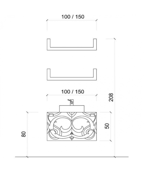 • Навесная тумба (нижний модуль) с 2-мя дверцами. Фасад тумбы выполнен из глянцевого акрила белого или черного цвета с рисунком - 1 шт.;