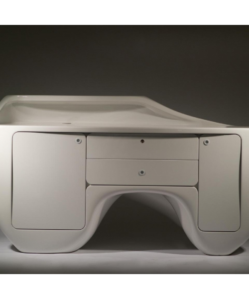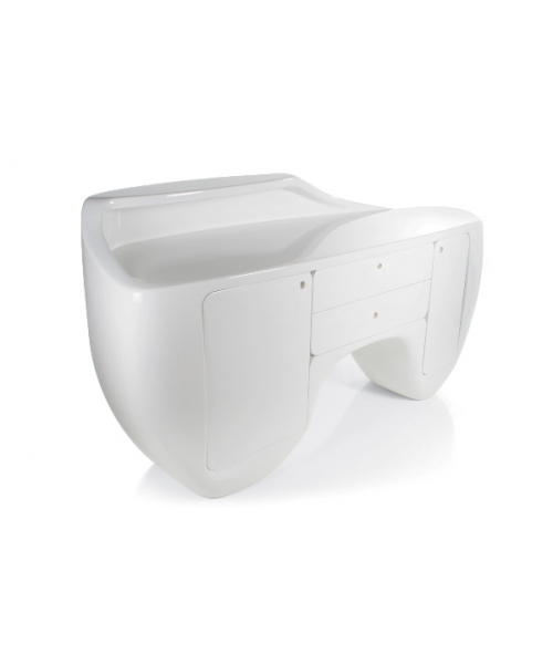 Стойка администратора "Fat Beauty" - стойка администратора с артикулом G-м60003171 оригинальной формы. Корпус и наполнение выполнены в ламинате белого цвета. Фасад выполнен из стекловолокна белого цвета.