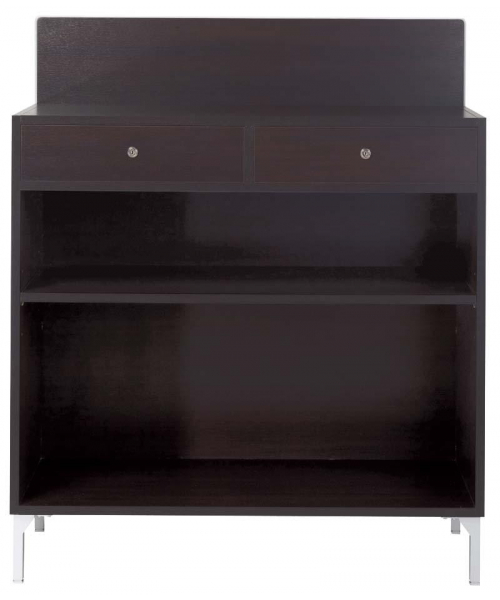 Рецепция прямоугольной формы, выполнена из ламината цвета венге, передний фасад из оргстекла. Возможен вариант с подсветкой. Имеется два выдвижных ящика и полка. Ножки металлические.
