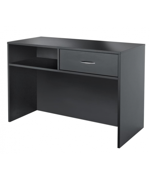 Рецепция выполнена из ламината черного цвета, с фасадом из белого оргстекла.