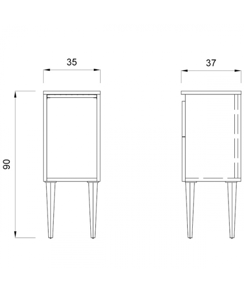 оснащена распашной дверцей, выдвижным ящиком, фенодержателем и алюминиевыми ножками.