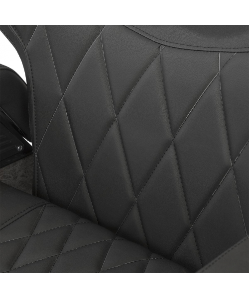 Каркас и основа из прочной стали отвечает за устойчивость массивной мебели для барбершопа. Обивка выполнена из фирменной экокожи с влагостойкими качествами. Спинка, сиденье и подножка украшены стильной прошивкой крупными ромбами. Для наполнителя использован упругий поролон. Благодаря своей структуре материал быстро восстанавливает форму после каждого использования.