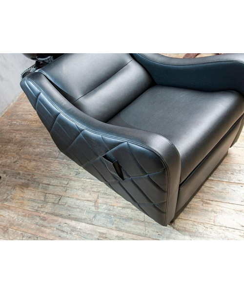 Боковая часть кресла декорирована стяжкой в форме ромбов, что придает модели строгости и элегантности.