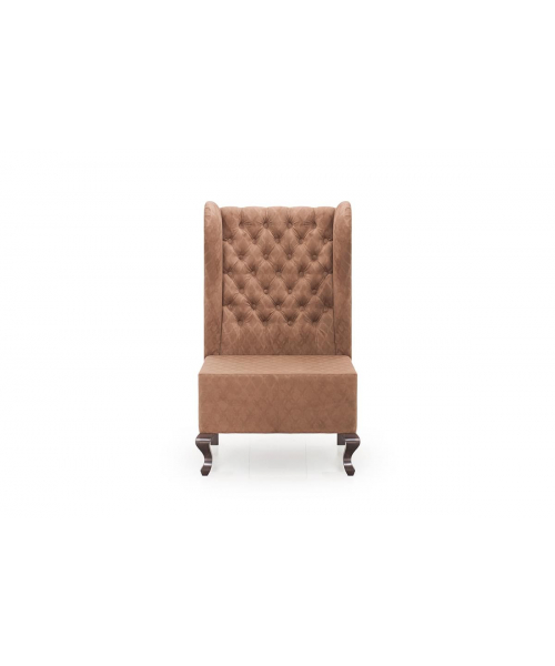 Может изготавливается в двух вариантах: кресло с каретной стяжкой на спинке, кресло с гладкой спинкой.