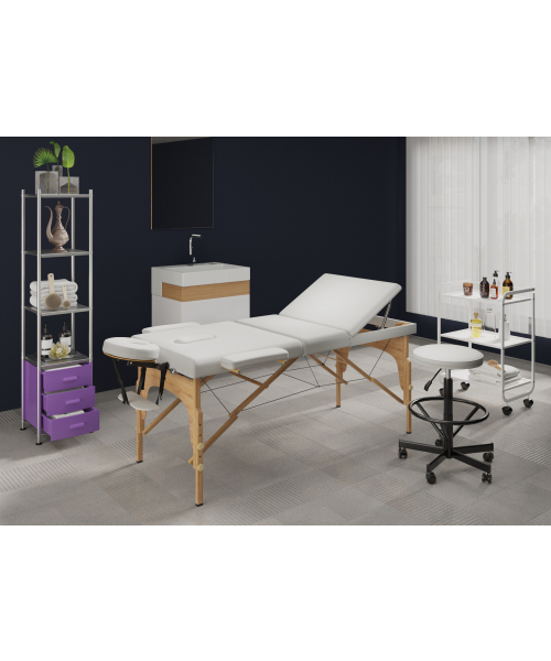 Стеллаж "Lino-3" – компактное и одновременно вместительное место хранения косметических средств и инструментов, необходимых в работе. Открытые полки позволяют удобно расположить оборудование, которое должно быть под рукой. Закрытые выдвижные ящики служат местом хранения мелочей, аппаратов и сопутствующих предметов. Стеллаж позволяет поддерживать порядок на рабочем месте, при этом не занимает много места, помогая эффективно организовать пространство.