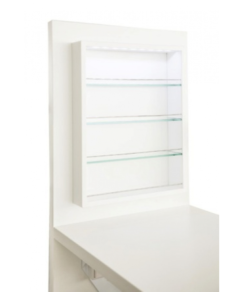 Современный комфортный маникюрный стол ШАРМ оснащен удобной подставкой для лаков с подсветкой.