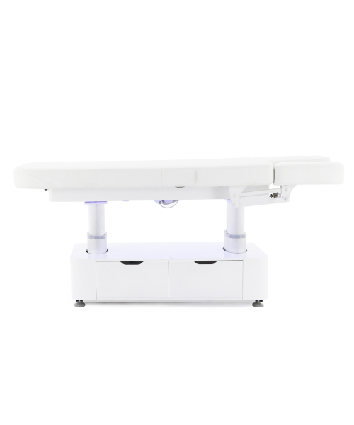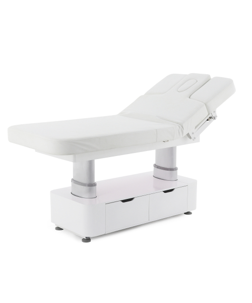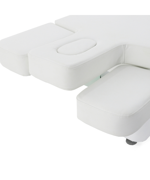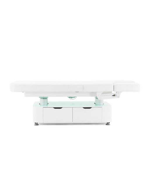 Стол изготовлен с учётом всех потребностей современной индустрии красоты. Мягкое и комфортное ложе имеет несколько секций и 4 мотора для плавной регулировки высоты и угла наклона подвижных частей. Рама изделия выполнена из стали высокой прочности и выдерживает нагрузку до 150 кг, что гарантирует долгий срок службы оборудования.