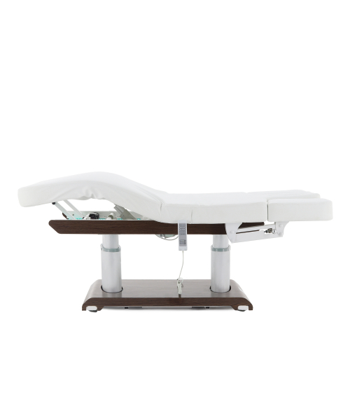 Стол выполнен с учётом новейших тенденций в области массажного оборудования. Модель имеет многосекционное ложе и 4 мотора для удобного управления настройками. С помощью эргономичного пульта можно легко и быстро выбрать необходимую высоту стола и угол наклона подвижных частей. Благодаря широкому диапазону регулировок мастер настраивает оборудование в соответствии с особенностями процедуры. Изделие имеет прочную стальную раму, выдерживающую до 150 кг, за счёт чего подходит практически любому пациенту.