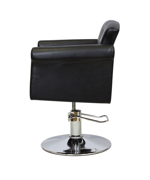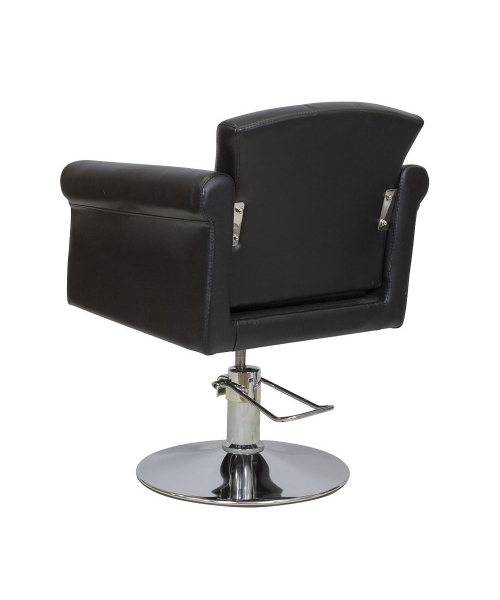 Конструкция кресло сделано так, чтоб удобно занимало место рабочую зону, а за надежность  и устойчивость кресла отвечает металлический каркас с защитным покрытием и надежное хромированное основание в форме диска. Данная модель имеет регулировку высоты при помощи гидравлика, которое позволяет мастеру регулировать высоту сиденья под каждого клиента для удобства во время процедур.