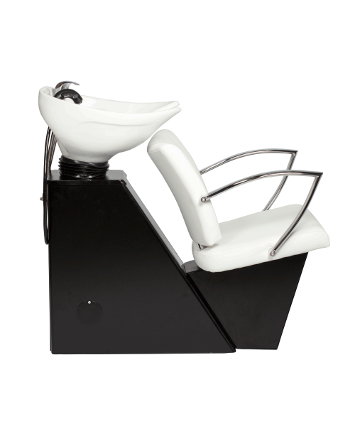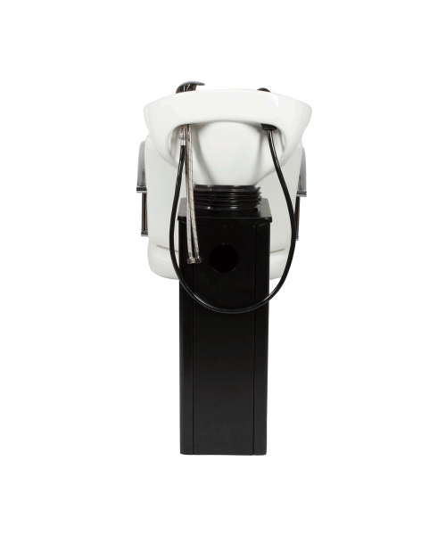 Раковина установлена на узел наклона, который крепится на металлический каркас, окрашенный в черный цвет,