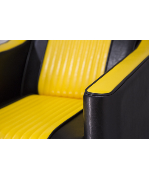Широкое сидение и удобные подлокотники подарят комфорт клиенту и обеспечат благоприятные условия для работы мастера. Мягкая часть кресла изготовлена из высокопрочного и эластичного поролона, обтянутого качественным кожзаменителем.