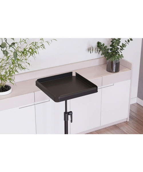 Ассистент колориста NA0057-оснащен надежными прорезиненными колесиками, обеспечивающими бесшумное и быстрое перемещение. Столик выполнен из пластика, ножка и основание – из хромированной стали. Предусмотрены отверстия для инструментов, углубления для чаши и ролик для фольги. В комплекте две кисточки, две чаши и шейкер.