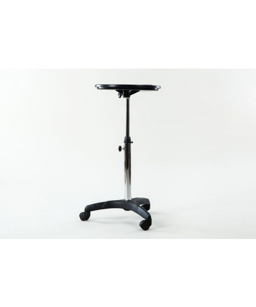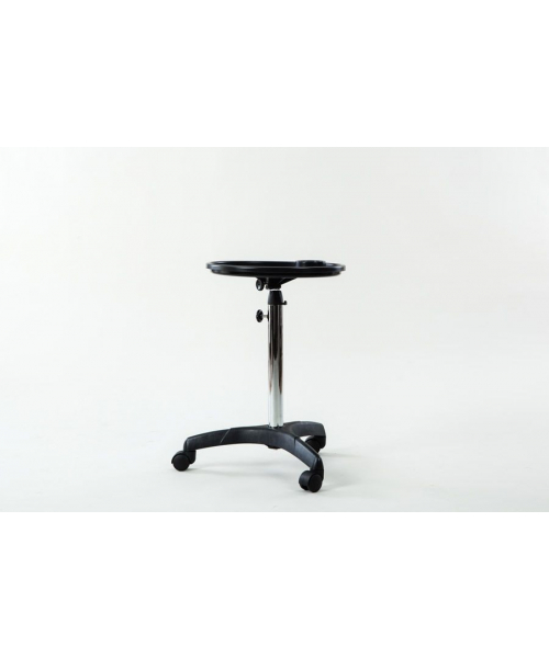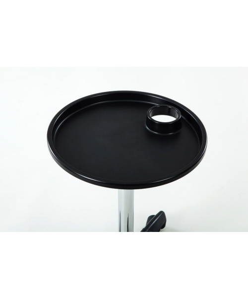Компактная тележка для аксессуаров c одним ярусом для размещения необходимых принадлежностей и инструментов. Столешница с отверстием для фена: продуманная конструкция облегчает работу парикмахера, все аксессуары находятся под рукой.