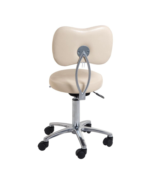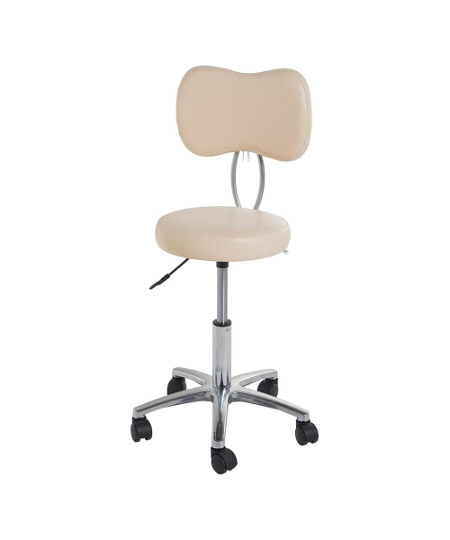 Изысканный дизайн сочетает в себе функциональность и практичность, которые так важны в работе мастеров индустрии красоты. Стул мастера с удобной спинкой в форме бантика и сидением круглой формы. Обивка из прочного кожзаменителя, устойчива к дезинфицирующим и моющим средствам. Габариты: 35(Ш) x 46(В) x 41(Г)