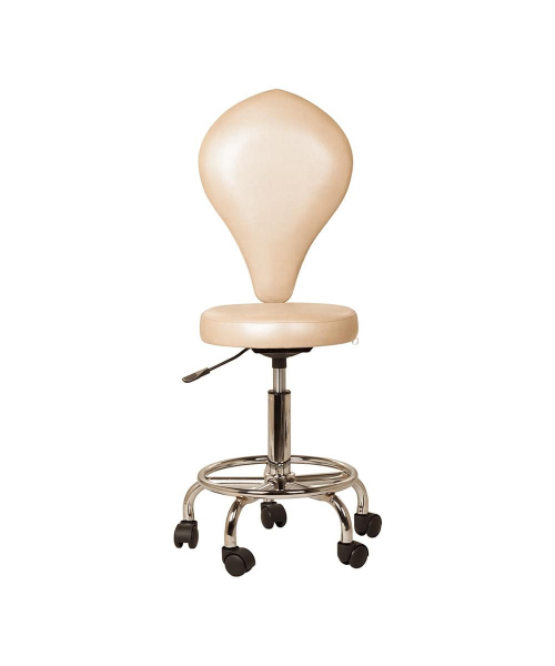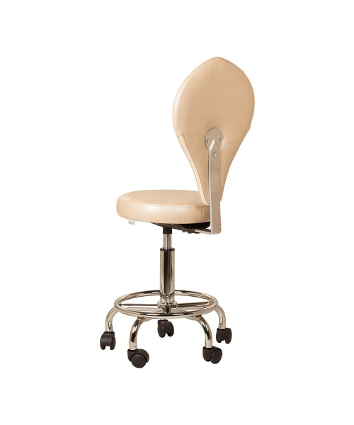 Изысканный дизайн сочетает в себе функциональность и практичность, которые так важны в работе мастеров индустрии красоты. Сидение табурета круглой формы с высокой спинкой в форме лепестка. Обивка из прочного кожзаменителя, устойчива к дезинфицирующим и моющим средствам. Габариты: 35(Ш) x 56(В) x 41(Г)