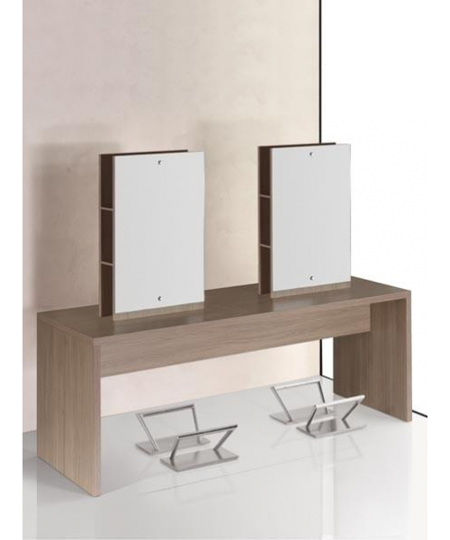Это рабочее зеркало парикмахера на четырёх клиентов изготовлено из ламинированного ДСП.