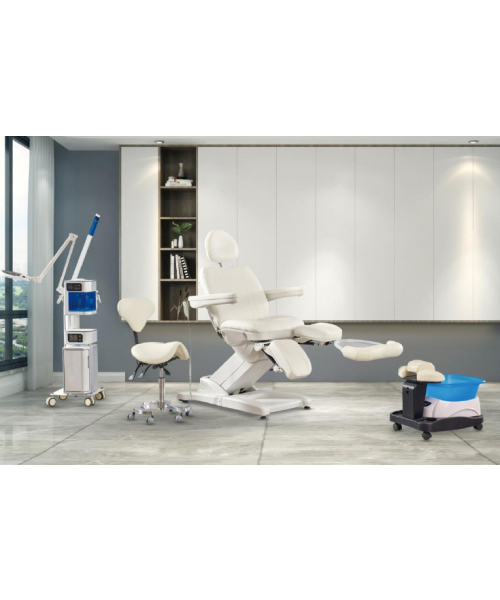 Кресло педикюрное "HM-030" - с помощью независимых моторов возможна регулировка сиденья в 3-х размерах с помощью пульта дистанционного управления. Дополнительный "лоток" на подставке для ног с мягкой опорой для рук гарантирует большой комфорт.