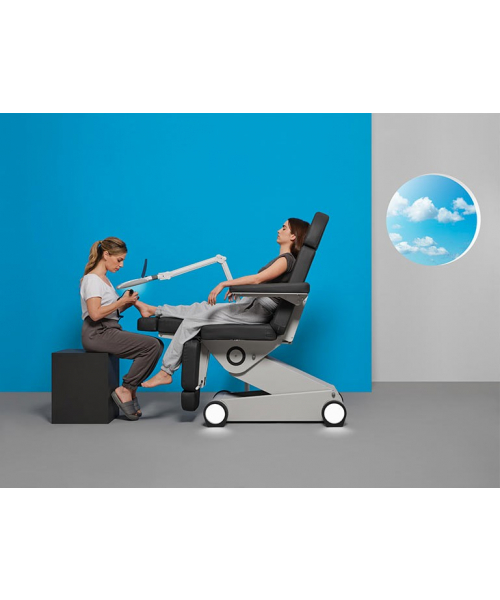 Педикюрное кресло "P155 EL PRINCIPE" 3 мотора - инновационное педикюрное кресло с 3-мя двигателями, максимальной устойчивостью и сверхкомпактным основанием. Двигатели позволяют легко регулировать спинку, высоту и положение угла наклона кресла с помощью пульта ручного управления, ножные секции регулируются пневматикой. Кресло P155 оснащено белой светодиодной подсветкой в основании. Разработано в Барселоне!