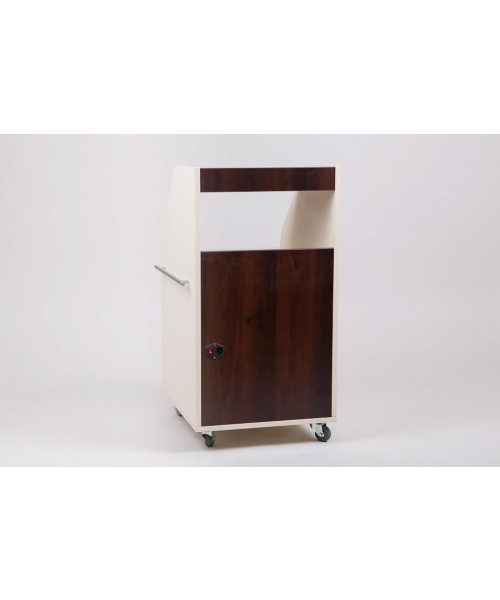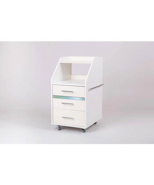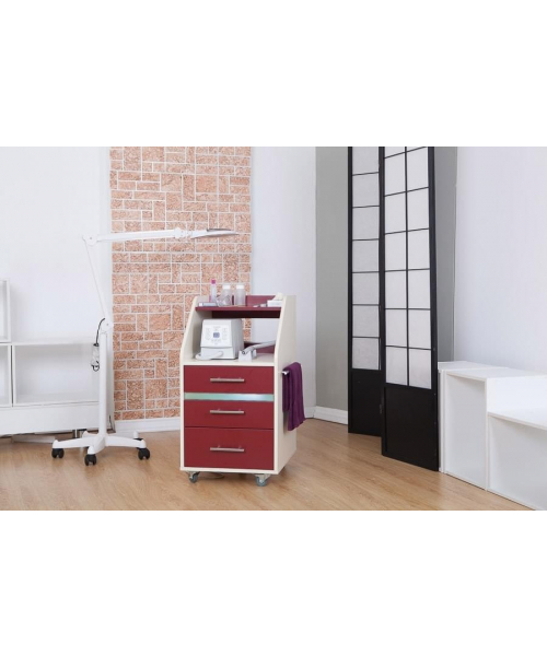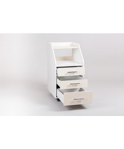 Тележка Атика имеет форму компактной тумбы. Модель является универсальной и многофункциональной, и может использоваться в качестве вспомогательной мебели в косметологическом, парикмахерском, массажном, маникюрном и педикюрном кабинетах. Низ оснащен колесиками, что позволяет мобильно и бесшумно перемещать изделие.