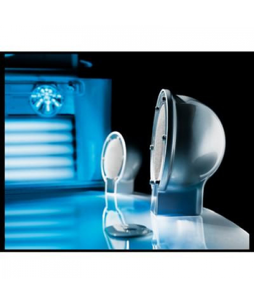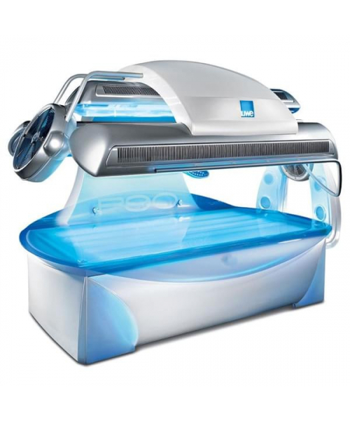 Горизонтальный солярий P-90 UWE (Германия). 12 ламп по 600Вт в верхней панели, 20 ламп по 160Вт в нижней панели, 3 лампы по 1000Вт для загара лица и декольте, 2 лампы по 250Вт для загара плечевой зоны. Возможность отключения ламп для лица и зоны декольте, кристаллический рефлектор нового поколения для максимально ровного загара. Мощность солярия – 17600Вт.Лампы: