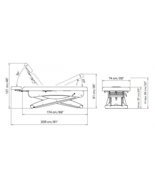 Имеет 2 электомотора для регулировки высоты кушетки и угла наклона опоры ног.