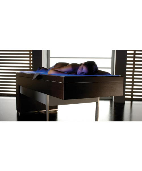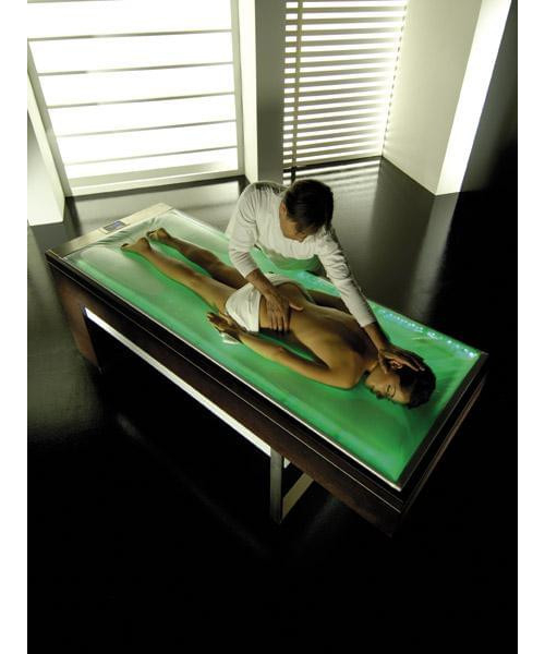 Представьте себе, что Вы лежите на берегу тропического моря и Вам делают расслабляющий массаж. Теплая волна обдает Ваше тело… и это ZERO1. Водяной бак, вмещающий приблизительно 120 литров, полностью изготовлен из стали AISI 304 толщиной 10/10 Предохранительная ванночка от затопления из алюминия, содержащая набитый матрас Матрасик из ПВХ с запатентованным водяным методом (запрос на патент PCT зарегистрирован) Электрический нагрев воды посредством электрического сопротивления на абразивный лист изолирующего силикона толщиной 0,88 мм, установленный в основании бака; площадь рассчитана с запасом во избежание накопления известняка (осадков). Общий ток нагрева 1000 Вт при 220V/50 герц Температура воды контролируется электронным программируемым термостатом, который работает с мерой точности + / - 0.5 градусов. Предохранительный термостат, предусмотренный в интересах абсолютной безопасности Максимальное потребление электроэнергии 6A при 220V/50 герц. Электронная схема, управляемая с помощью компьютерной системы, в которой предусмотрена внешняя панель управления Циркулятор с прерывистым действием, предназначенный для накачки теплой воды вовнутрь матрасика из ПВХ, который окружает тело, лежащее на кушетке, и обдает его водой, как теплая волна тропического моря Осветительная система LED (хромотерапия) со сменой цветов в автоматическом режиме или в предустановленной последовательности (красный, оранжевый, желтый, зеленый, голубой, синий, фиолетовый) Облицовка из дуба, окрашенного в венге и серый цвет, нержавеющая сталь ДОСТОИНСТВА • Предполагает возможность любого типа массажа или лечения, при этом оператор и клиент не соприкасаются с водой • Каждые 30 секунд создает слабую волну, которая обдает все тело, начиная с ног и кончая шеей, затем в обратном направлении. • Оригинальный метод позволяет телу оставаться почти неподвижным на уровне набитого матраса кушетки, что обеспечивает идеальное сцепление между руками терапевта и кожей клиента. • Оператор может задать температуру воды и цвет • Для установки «ZERO1» не нужны особые условия, так как «ZERO1» заменяет обычную массажную кушетку. Технические параметры • Конструкция из дуба цвета венге или серого • Стояк и панель из нержавеющей стали • Максимальное поглощение 220V – 6A • Подбитая плоскость с запатентованным методом сухого орошения • Освещение воды различными цветами (запатентованный метод) Размеры: см. 220x82x 80 высота от рамки (карниза) / 79 Н от опорной поверхности Вес: 110 кг ПУСТАЯ; ≈ 210/230 КГ НАПОЛНЕННАЯ ВОДОЙ Без регулировки