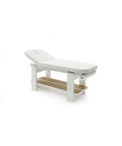 Матрас из белой скаи оснащен отверстием для лица с крышкой и держателем рулона. Подголовник регулируется вручную.