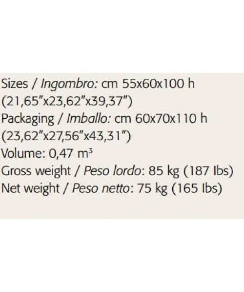 • Общий вес с упаковкой: 85 кг;